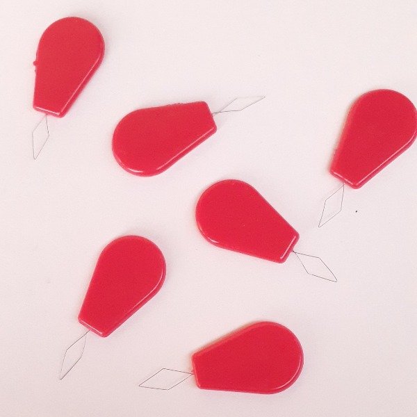 De plástico con filamento de acero. Indispensable para enhebrar hilados gruesos