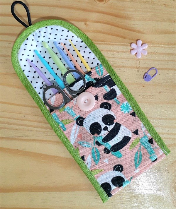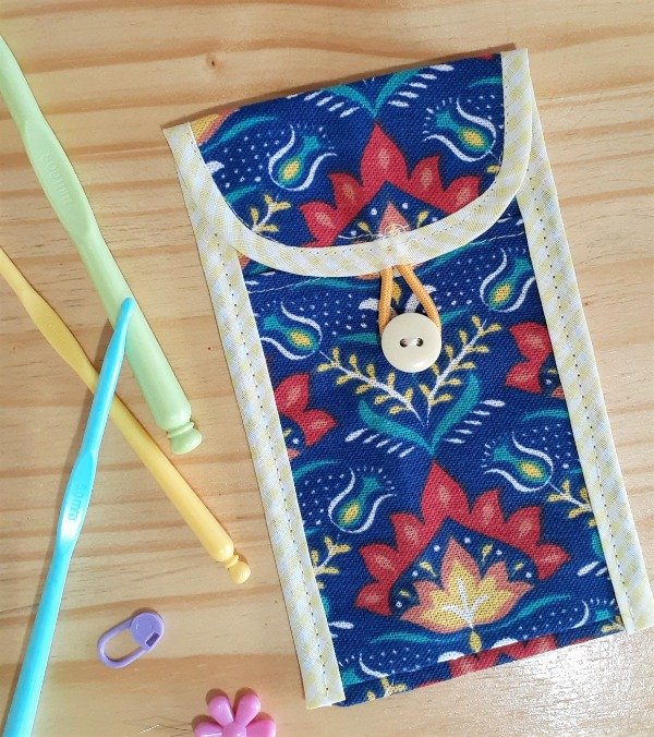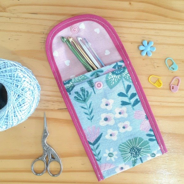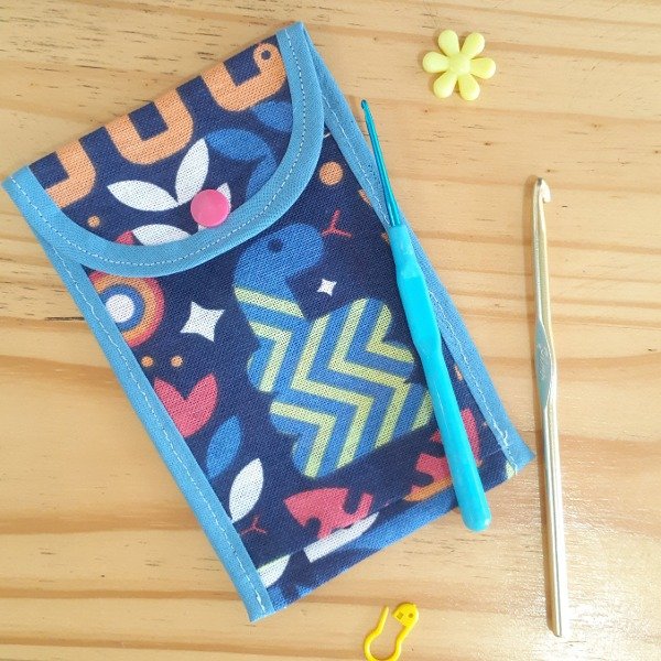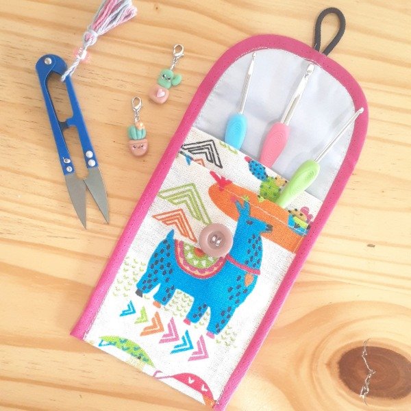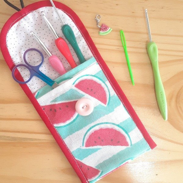 Sobre de tela tamaño compacto para que puedas llevar todas tus herramientas de tejido.