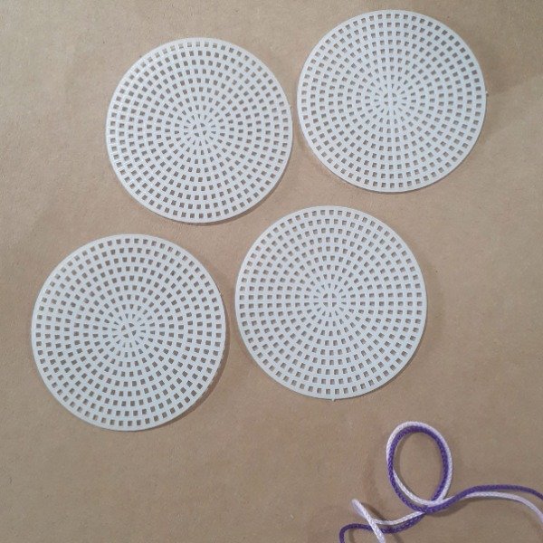 Malla plástica redonda de 7,5 cm de diámetro x 4 unidades. Ideal posavasos